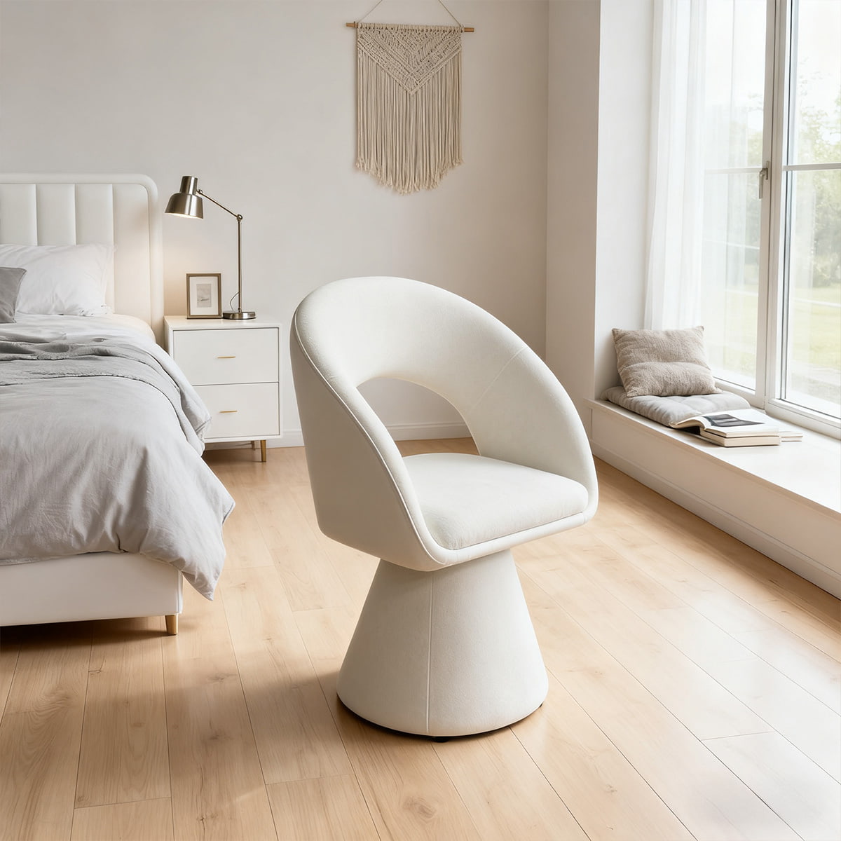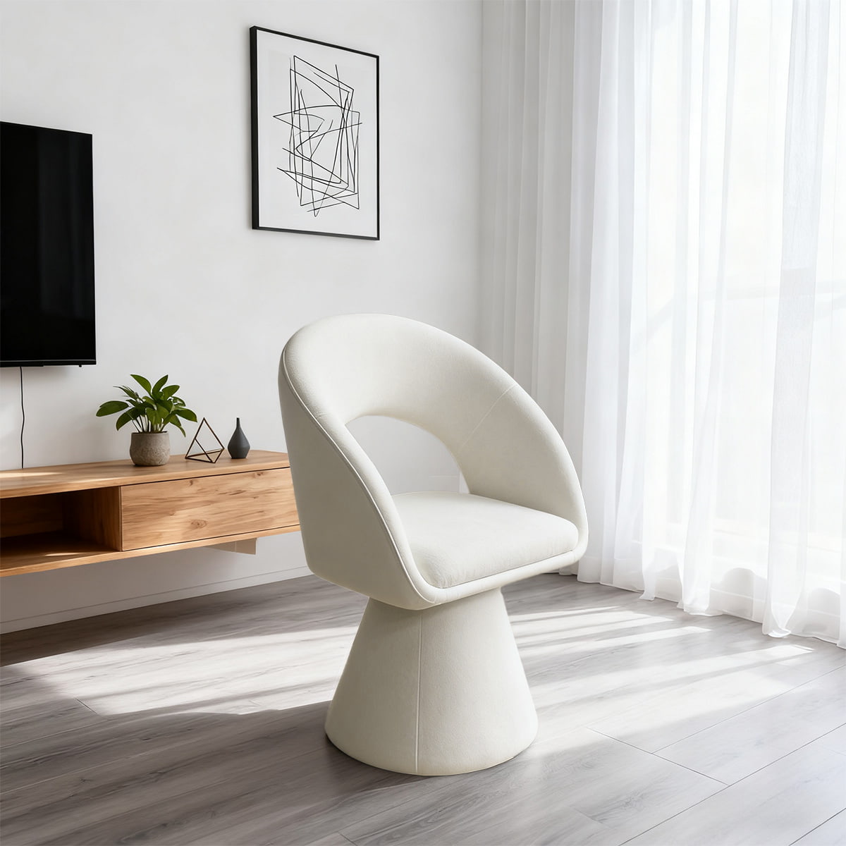 Modern Curved Design Swivel Cream White Teddy Velvet Accent Chair - 360° Rotating Upholstered Dining & Leisure Cathedra with Coele Backrest